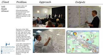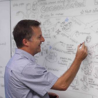 "Martin brings a special set of creative skills to our workshops and client interactions. His ability to visualise concepts, tools, methodologies, systems and processes into original drawings bring these often complex and multilayered messages to life. Martin makes the complex - simple, and in doing this, makes them more understandable and engaging. His visualisations are used extensively in many areas of our organisation, both internally and externally"