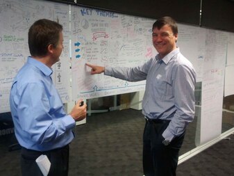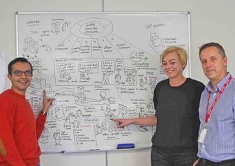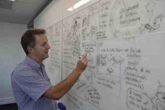 The visualisation process is sometimes referred to as graphical facilitation (or graphic facilitation). Its all about group engagement to create a visual representation of a complex message using hand drawn images. Pictures are a great way to reduce complexity into messages that are easy to understand. These sessions help everyone get on the same page - and they are fun too !