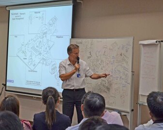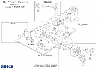 During 2015 Beca ran a series of workshops with SBS Transit in Singapore to communicate the principles of the new ISO Asset Management Standard. Martin created hand drawn visuals during the presentations to explain the principles of the standard for audiences of up to 100 people at a time.